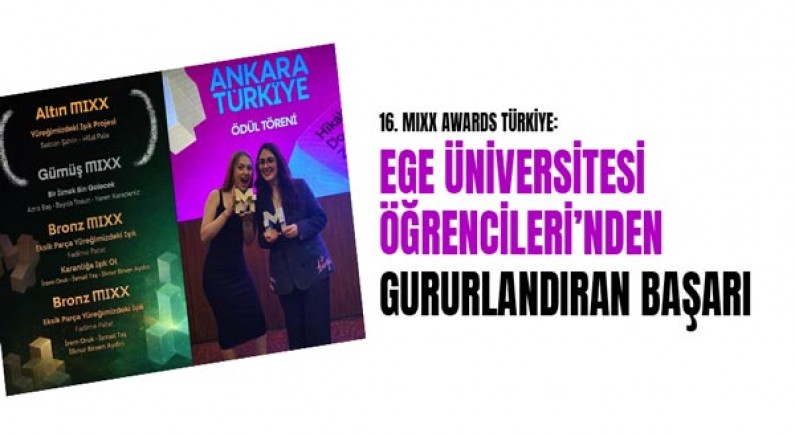 16. MIXX Awards Türkiye’de ödüller sahiplerini buldu. Genç Altın MIXX kategorisinde, Ege Üniversitesi İletişim Fakültesi Reklamcılık Bölümü öğrencileri Selcan Şahin ve Hilal Pala birincilik elde ederek Altın MIXX ödülünün sahibi oldu.