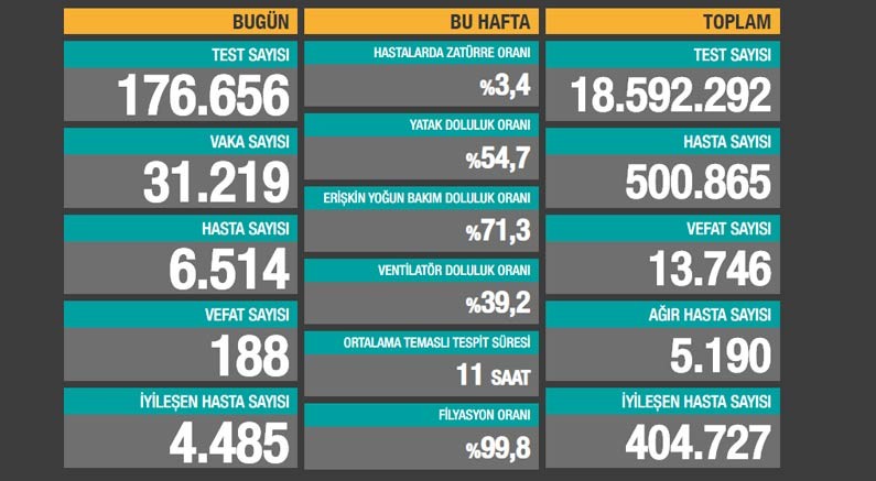 Öte yandan bugün 188 kişinin hayatını kaybetmesiyle günlük vefat sayısında yeni bir rekor kırıldı.