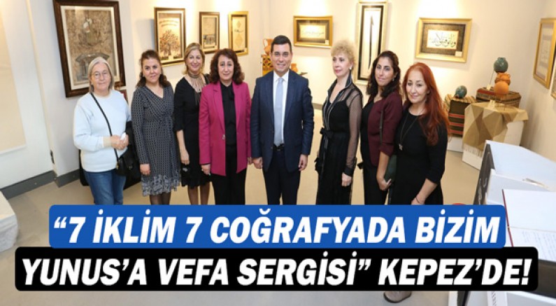 Konuşmaların ardımdan kurdele kesimiyle ‘7 İklim 7 Coğrafyada Bizim Yunus’a Vefa’ temalı serginin açılışı yapıldı. Kepez Belediye Başkanı Hakan Tütüncü, beraberindeki heyetle sergiyi gezerek, minyatür, tezhip, hat, naht, dokuma, seramik, kilim gibi eserlerden oluşan ürünleri inceledi.