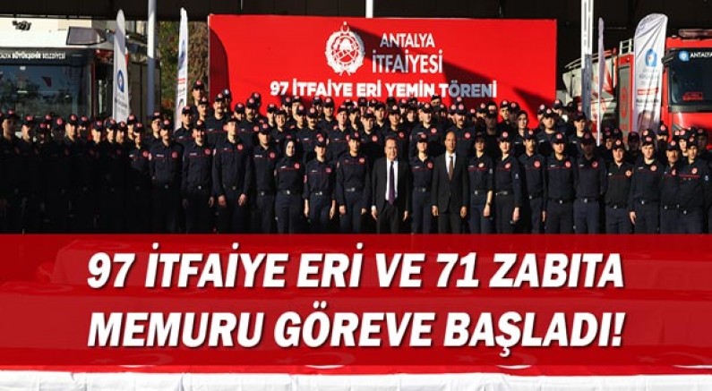Antalya Büyükşehir Belediyesi kadrosuna katılan 97 itfaiye eri ve 71 zabıta memuru atamaları gerçekleşerek göreve başladı. Büyükşehir Belediye Başkanı Muhittin Böcek zorlu bir eğitim görerek itfaiye eri olmaya hak kazanan 97 personelin yemin törenine katıldı. Başkan Böcek, atamaları yapılan 71 zabıta memuru ile de bir araya gelerek görevlerinde başarılar diledi.