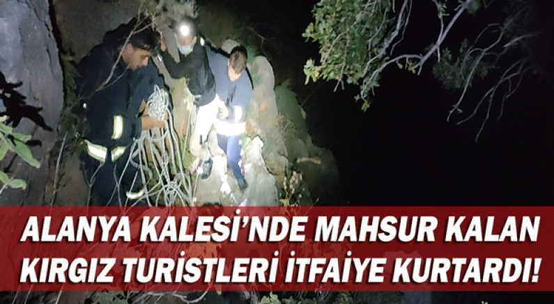 Kırgızistan uyruklu Şımırbayev Rahmetulla ve Şımırbayev Kubanıçbekiki adlı turistler tatil için geldikleri Alanya’da macera için çıktıkları kalenin sarp kayalıklarında mahsur kaldı. Alanya Kalesi’nin Adam Atacağı mevkiindeki kayalıklara tırmanan ancak daha sonra bulundukları yerden çıkamayan turistlerin kurtarılması için Antalya Büyükşehir Belediyesi İtfaiyesi Alanya Grup Amirliği’ne bir vatandaş ihbarda bulundu.