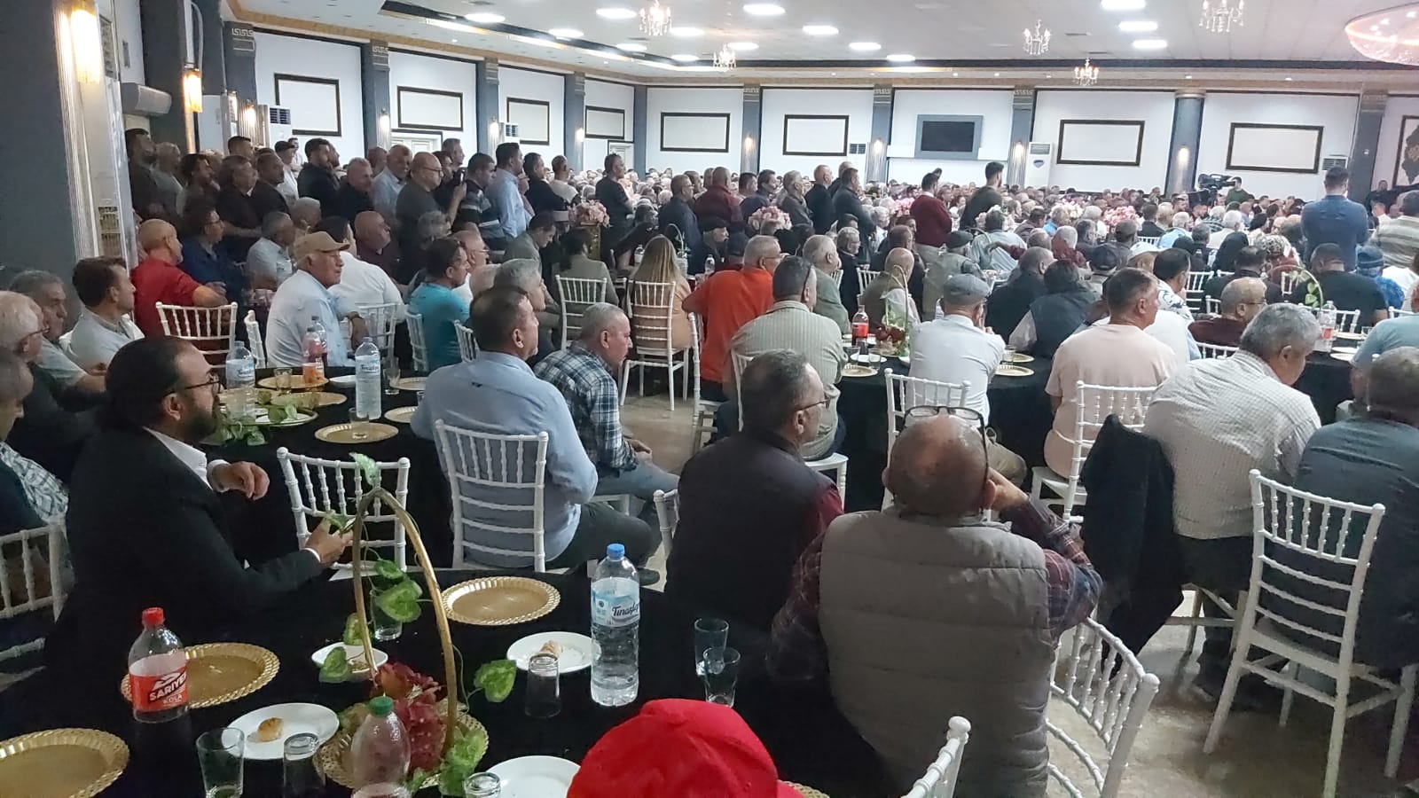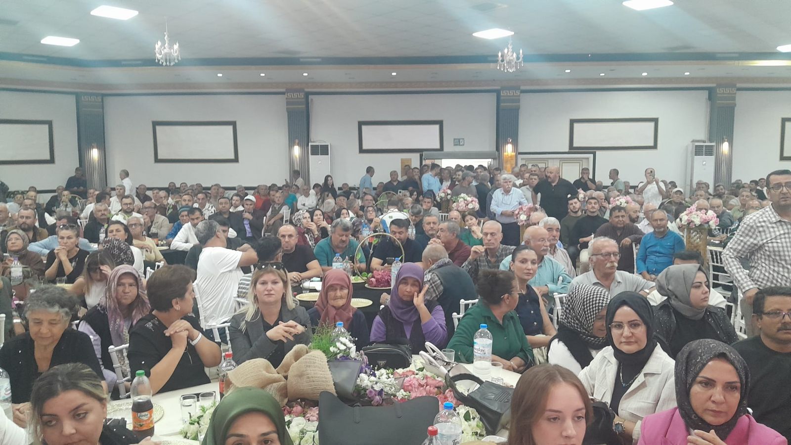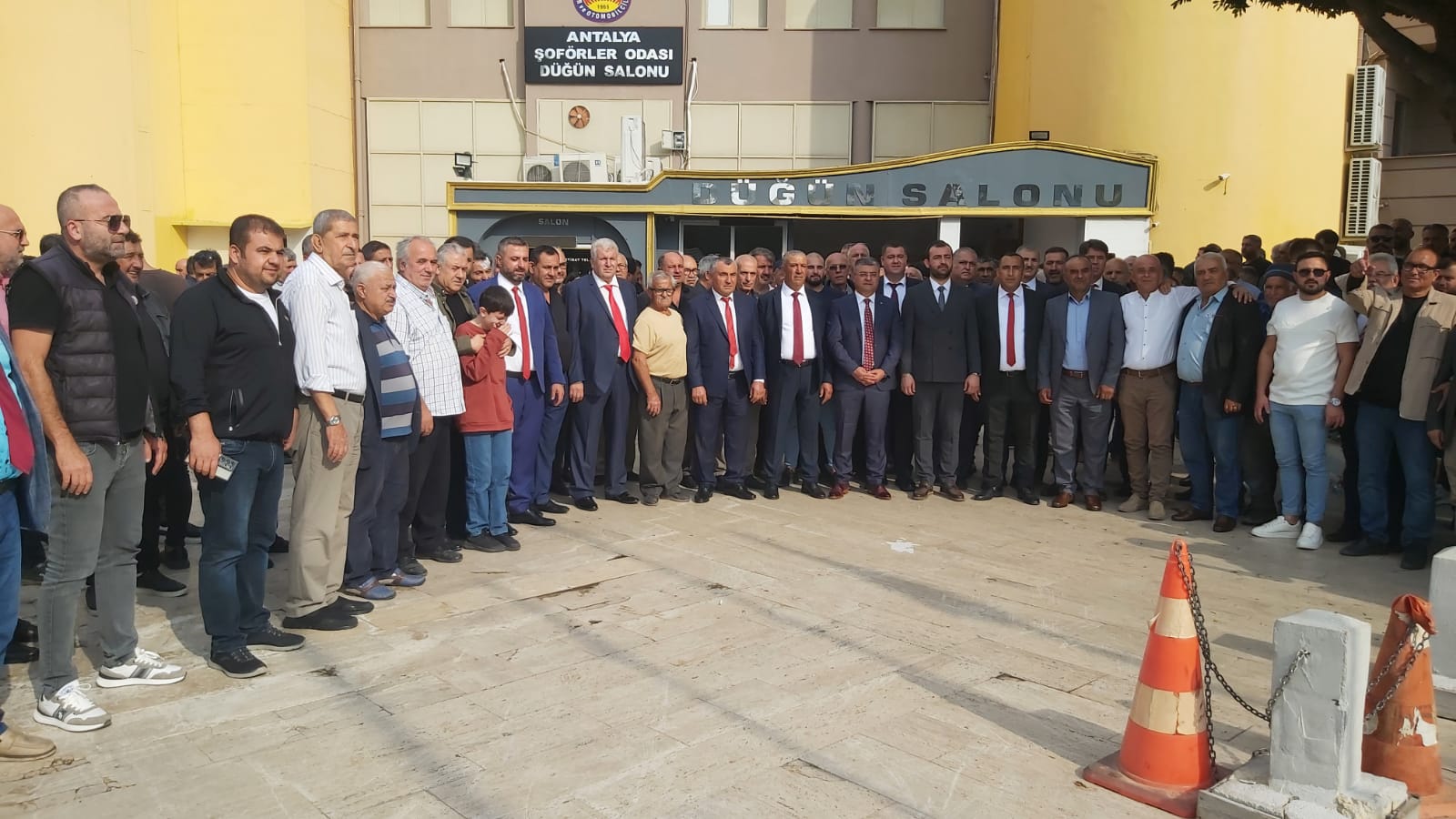 Antalya Şoförler ve Otomobilciler Odası Düğün Salonu’nda düzenlenen toplantıda, Alkan ve ekibi katılımcıları kapıda karşılayarak “hoş geldiniz” dedi.