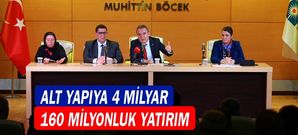 Başkan Böcek, 2023 yılı sonuna kadar alt yapıya 4 milyar 160 milyon TL’lik yatırım yapacaklarını açıkladı. Programlarını yaptıklarını anlatan Başkan Böcek, şunları söyledi: “11 ay içerisinde Antalya’nın Gazipaşa’dan Kaş’a kadar fotoğrafını çektik. Röntgenini çektik. Nerede ne eksiği var. Bunun içinde atıksu, içme suyu, kanalizasyon, yağmur suyu, boruların değişmesi var. Tarımsal sulama da var. Köylümüze yardım edeceğiz. Bu yatırımları yaparken ince eleyip sık dokuyoruz. Bunlar sizin paralarınız. Tüyü bitmemiş yetimin hakkını koruyoruz. Çalışmalarımızda ben bilirim değil, birlikte bilirizi önemsiyoruz ve buna göre hizmet ediyoruz.”