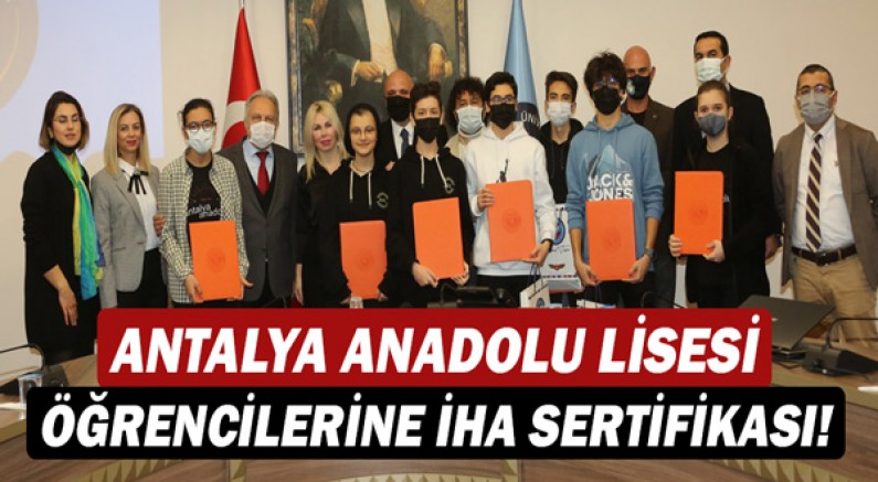 Akdeniz Üniversitesi Havacılık Uygulama ve Araştırma Merkezi (AKHUMER), tarafından düzenlenen İHA eğitimleri sonucunda sertifika almaya hak kazanan Antalya Anadolu Lisesi öğrencileri için sertifika töreni düzenlendi. Akdeniz Üniversitesi Senato Salonu’nda gerçekleştirilen törene Akdeniz Üniversitesi Rektörü Prof. Dr. Özlenen Özkan, Genel Sekreter Ali Evren İmre, AKHUMER Müdürü Doç. Dr. Halil Özekicioğlu, Antalya Anadolu Lisesi Müdürü Hasan Akın, öğretim üyeleri, öğretmenler ve sertifika almaya hak kazanan öğrenciler katıldı.