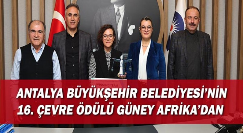 Ödül ve Antalya Büyükşehir Belediyesi’nin takım kaptanlığı yaptığı grubun birinciliğini gösteren banner, Başkan Danışmanı Lokman Atasoy ve Dr. Fulya Kandemir tarafından Başkan Muhittin Böcek’e takdim edildi. Başkan Muhittin Böcek, “11 ilimizi etkileyen deprem afeti nedeniyle zor günlerden geçtiğimiz bu dönemde dahi bilimsel çalışmalarımızdan ödün vermeden, belediyemizi ve ülkemizi en iyi şekilde temsil etmeye özen gösteriyoruz. Bir yandan yaralarımızı birlikte sarıyoruz diğer yandan da çevre, altyapı, üstyapı gibi tüm alanlarda proje ve hizmetlerimizi aksatmadan sürdürüyoruz. Çevre ve doğa dostu Antalya hedefiyle sürdürülen çalışmalarımız kapsamında Antalya Büyükşehir Belediyemizin 16. Çevre ödüllünü Güney Afrika’dan getirmenin mutluluğunu yaşıyoruz. Emeği geçen tüm arkadaşlarımı kutluyorum. Başarılarımızın devamını diliyorum” dedi.