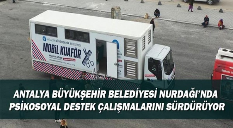 Antalya Büyükşehir Belediye Başkanlığı koordinesinde Gaziantep’in Nurdağı ve İslahiye ilçelerinde çalışmalar aralıksız devam ediyor. Nurdağı’nda kurulan konteyner kentte afetzede vatandaşların barınma ve yemek ihtiyaçları karşılanırken, mobil tuvalet ve banyolar da önemli bir ihtiyaca cevap veriyor. Antalya Büyükşehir Belediyesi’nin mobil kuaför tırı da bir gün şehir merkezi, bir gün köyler olmak üzere depremzede vatandaşlara hizmet veriyor.