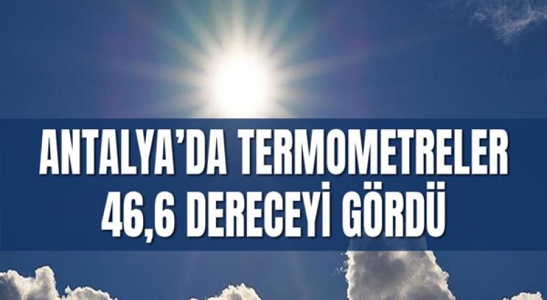 Meteoroloji Genel Müdürlüğü’nün verilerine göre, Türkiye genelinde dün en yüksek sıcaklık Antalya’da kaydedildi. Hatay Kırıkhan’da 46,1, Gaziantep Karkamış’ta 46 ve Adana Kozan’da 45,6 derece sıcaklık ölçümleri yapıldı.