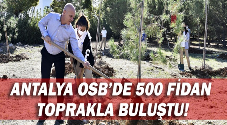 Daha yeşil bir Türkiye için başlatılan Milli Ağaçlandırma Günü kapsamında, Antalya Organize Sanayi Bölgesine 500 fidan dikildi. Bölgenin birinci kısım alanında bulunan korulukta gerçekleştiren ağaç dikim törenine Antalya OSB Başkanı Ali Bahar, Antalya OSB Eğitim Komisyonu Üyeleri Ömer Bacanak, Fatin Tapcı, Bölge Müdürü İlhan Metin, Antalya OSB Teknik Koleji öğrenci ve öğretmenleri katıldı. Törene katılanlar, 75 adet fıstık çamı fidanının toprakla buluşmasını sağlarken, geri kalan fidanlar, Antalya OSB Park ve Bahçeler Müdürlüğü ekiplerince Bölgenin muhtelif alanlarına dikildi.