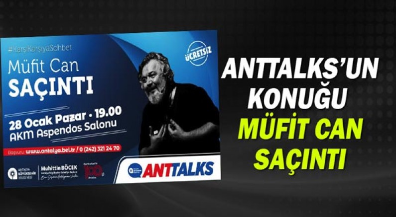 Anttalks: ‘Karşı Karşıya Sohbet’ etkinliğinin konuğu ‘Mandıra Filozofu’ filmleriyle dikkati çeken yönetmen, oyuncu ve senarist Müfit Can Saçıntı olacak. Ünlü sanatçı Saçıntı’nın, karşı karşıya sohbetle deneyimlerini katılımcılarla paylaşacağı etkinlik ücretsiz olarak 28 Ocak Pazar günü saat 19.00’da Atatürk Kültür Merkezi’nde gerçekleşecek. Antalya Büyükşehir Belediye Başkanı Muhittin Böcek, etkinliğe tüm Antalyalıları davet etti.
