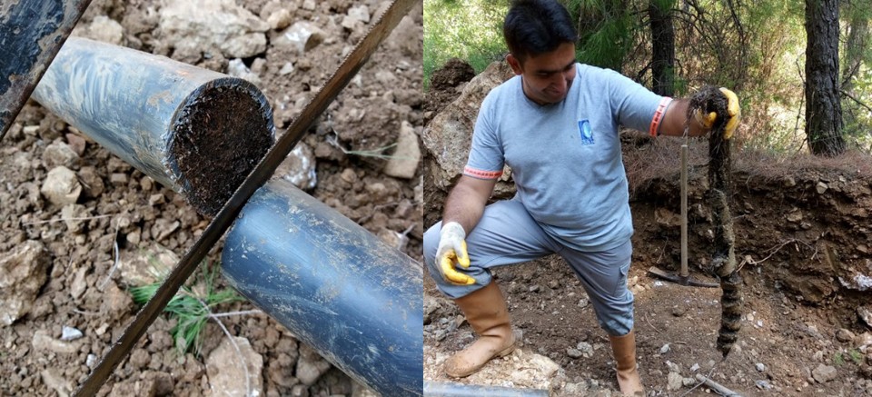 Akseki Aşağı Aşıklar Mahallesi’nde ise kaptajdan depoya gelen hattın 2 kilometrelik kısmında suyun depoya gelmediğinin bildirilmesi üzere ASAT ekipleri çalışma yaptı. Ekipmanlar ile hattın dinlemesi yapıldı ve problemli kısım bulunarak kesildi. Hattın içinde oluşan saçak temizlenerek yenileme yapıldı. Aynı hat üzerinde yol çalışmasından dolayı kırılan 40 metrelik hat da yenilenerek depoya su verildi. Akseki merkezde ise 150 hanenin etkilendiği kanalizasyon hattında ise onarım yapıldı. Akseki ASAT ekipleri asfaltı keserek yeni boru döşedi ve hattın bağlantısını yaptı.