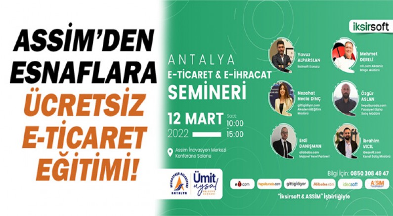Cumartesi 10.00-15.00 saatleri arasında ASSİM’de ücretsiz gerçekleştirilecek seminerle, esnaf ve girişimcilere e-ticaretle işlerini büyütme fırsatları sunmak, büyük markalarla rekabet şansı yaratmak, küçük ve orta ölçekteki işletmelerin pazarda yerini almalarına destek olmak amaçlanıyor.