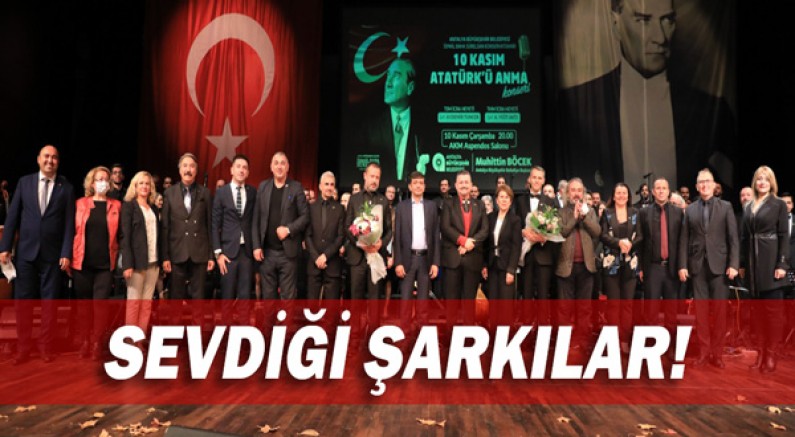 Antalya Büyükşehir Belediyesi Kültür ve Sosyal İşler Dairesi Başkanlığı'na bağlı İsmail Baha Sürelsan Konservatuvarı, Gazi Mustafa Kemal Atatürk'ü 83’üncü ölüm yıldönümünde anlamlı bir konserle andı. Atatürk Kültür Merkezi Aspendos Salonu’nda düzenlenen konserde Atatürk’ün sevdiği şarkıların yanı sıra marşlar da seslendirildi. Konsere, Antalya Büyükşehir Belediyesi Genel Sekreteri Cansel Tuncer, Genel Sekreter Yardımcısı Ramazan Demir, Ulaşım A.Ş. Yönetim Kurulu Başkanı Deniz Filiz, büyükşehir belediyesi bürokratları ve Antalyalılar katıldı.