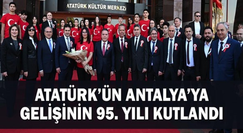 Gazi Mustafa Kemal Atatürk’ün Antalya’ya gelişinin 95. yılı bir dizi etkinlikle kutlandı. Cumhuriyet Meydanı’nda düzenlenen çelenk sunma törenine Antalya Büyükşehir Belediye Başkanı Muhittin Böcek, Cumhuriyet Halk Partisi (CHP) Antalya İl Başkanı Nail Kamacı, belediye başkanları, sivil toplum kuruluşu temsilcileri ve vatandaşlar katıldı. Çelenk sunma programının ardından AKM’de gerçekleşen törene Antalya Valisi Hulusi Şahin, Büyükşehir Belediye Başkanı Muhittin Böcek, milletvekilleri, belediye başkanları, sivil toplum kuruluşu temsilcileri ve öğrenciler katıldı.