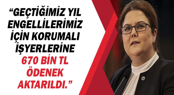 Bakan Yanık, Bakanlık olarak 2021 yılında korumalı işyerlerine her bir engelli çalışanı için aylık 991,69 TL destek sağlarken, 2022 yılının ilk 6 ayı için bu desteği 1.298 TL’ye yükselttiklerini kaydederek, “Bakanlığımız tarafından geçtiğimiz yıl engellilerimiz için korumalı işyerlerine 670 bin TL ödenek aktarıldı. Ayrıca korumalı işyerlerinin kurulmaya başlandığı 2016 yılından bugüne kadar bu işyerlerinde çalışan engelli bireyler için toplam 2 milyon 276 bin TL destekte bulunduk.” dedi.
