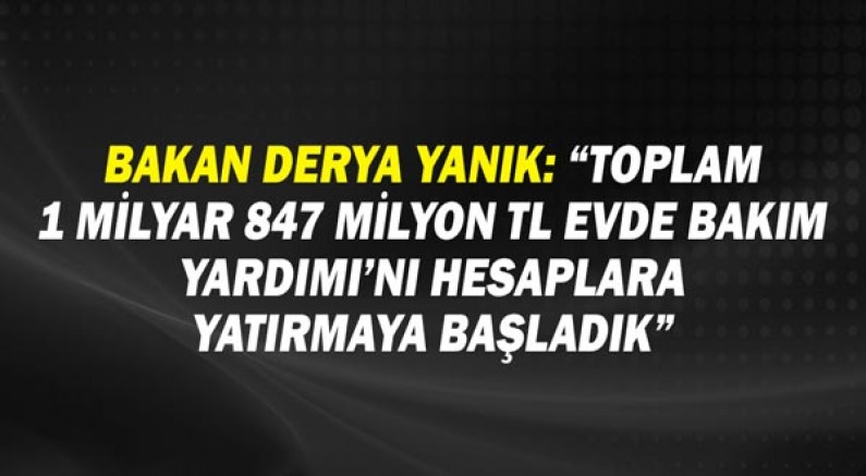 Bakan Yanık, “Bakıma ihtiyacı olan ağır engelli vatandaşlar ve ailelerine ekonomik destek sağlamak amacıyla bu ay toplam 1 milyar 847 milyon TL Evde Bakım Yardımı’nı hesaplara yatırmaya başladık. 2022’de toplam 18 milyar TL Evde Bakım Yardım ödemesi yaptık. Ödemelerin tüm engelli vatandaşlarımıza hayırlı olmasını dilerim. Bakanlık olarak engelli bireylerin eğitim, sağlık, güvenlik, istihdam gibi temel haklarına tam olarak ulaşmaları için hak temelli bir bakış açısıyla politikalar geliştirmeye devam edeceğiz.” ifadelerini kullandı.