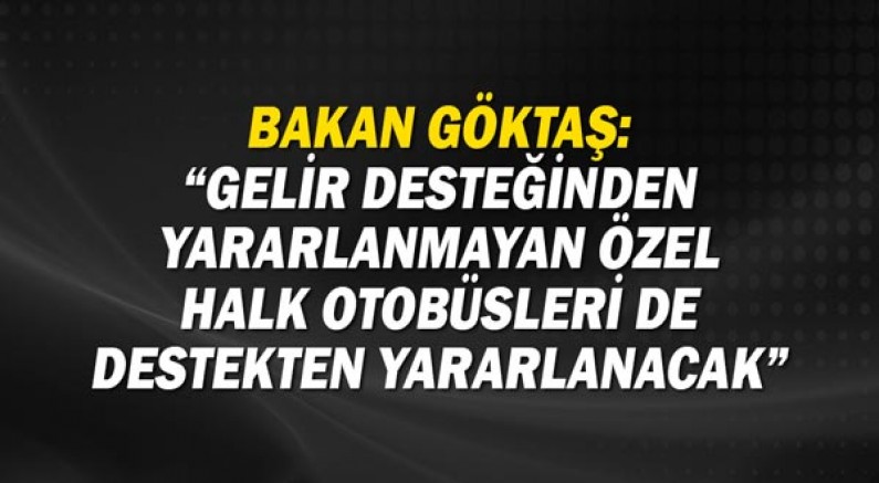 Bakanlık ile Tüm Özel Halk Otobüsleri Birliği arasında ücretsiz seyahat kapsamında ödenen gelir desteğine ilişkin görüşmelerin devam ettiğini bildiren Bakan Göktaş, şunları kaydetti: