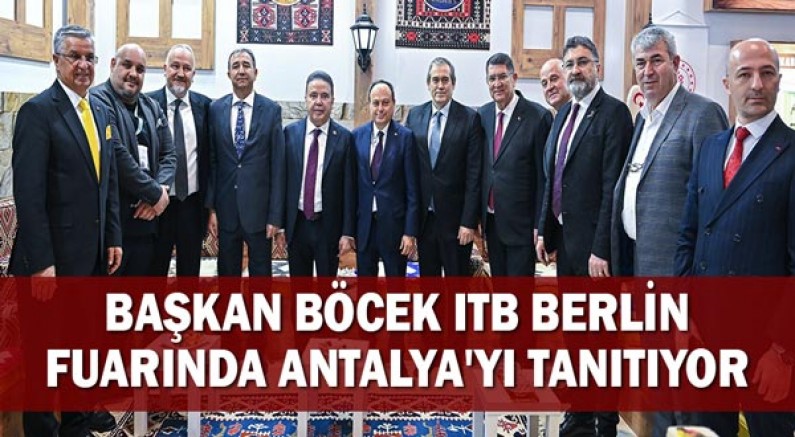 Dünya’nın en prestijli turizm fuarlarından biri olan ITB Berlin Fuarı açıldı. Akdeniz Belediyeler Birliği ve Antalya Büyükşehir Belediye Başkanı Muhittin Böcek, ITB Berlin Fuarı’na belediye başkanları, turizm sektör temsilcileriyle birlikte katılarak, Antalya’nın tanıtımına katkı sağlıyor. Başkan Muhittin Böcek, ITB Berlin Fuarı’nın ilk gününde Türkiye’nin farklı noktalarından fuara katılan sektör temsilcileriyle bir araya gelerek, kültür, turizm ve çevrenin başkenti Antalya’yı uluslararası arenada en güçlü şekilde tanıtıyor.