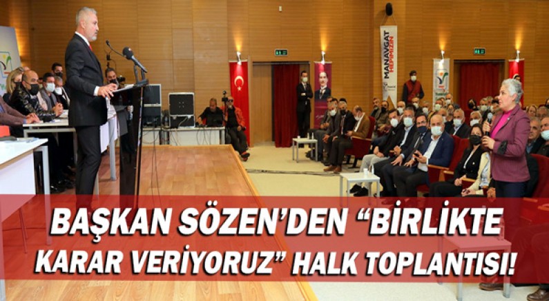 Atatürk Kültür Merkezi’nde düzenlenen halk toplantısına, siyasi parti ilçe başkanları, belediye meclis üyeleri, sivil toplum kuruluşu temsilcileri ve yönetimleri, odalar ve dernek başkanları ve Manavgat ve Antalya basınının temsilcileri ve Manavgat halkı katıldı. Büyük ilgi gören toplantıda konferans salonu dolup taşarken, pek çok vatandaş da Başkan Şükrü Sözen’in konuşmasını fuaye alanına kurulan dev ekrandan izledi.