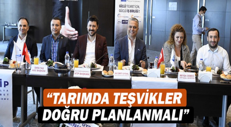 Muratpaşa Belediye Başkanı Ümit Uysal, Antalya Ticaret Platformu’nun (ATİP) düzenlendiği buluşmada, tarımda teşvikleri planlayacak iktisadi bakış açısına ihtiyaç olduğunu belirterek, “Teşviklerle Akdeniz’in en tropikal ovasını muz serasına boğarsan olmaz. Dönümüne 300 bin lira harcadığımız, domatesin 7 katı su harcayan bir meyveyi mi ayıracağız bu ovayı? Böyle olmaz. Ama planlarsan, rekabetçi olursan, verimlilik bakış açısıyla bakarsan olur” diye konuştu.