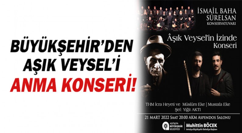 Antalya Büyükşehir Belediyesi İsmail Baha Sürelsan Konservatuarı, usta sanatçı Erdal Erzincan'dan sonra sanatçı Müslüm ve Mustafa Eke kardeşleri ağırlayacak. 21 Mart Pazartesi günü Atatürk Kültür Merkezi Aspendos Salonunda saat 20:00’de, şef Yiğit Aktı yönetimindeki Türk Halk Müziği İcra Heyeti ile Müslüm Eke-Mustafa Eke kardeşler "Âşık Veysel'in İzinde" isimli konserde sahne alacak. Konser halka açık ve ücretsiz olacak düzenlenecek.