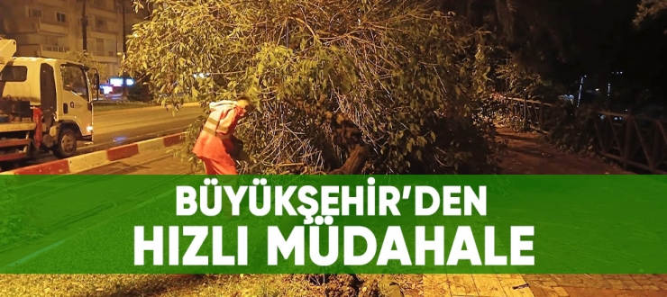 Antalya’da dün akşam aniden bastıran kuvvetli fırtına ve sağanak yağış hayatı olumsuz etkiledi. Ağaçlar rüzgarın etkisiyle yola ve araçların üzerine devrilirken, gün ısı ve tabelalar uçtu. Duraliler Mahallesi’nde cami minaresi yıkıldı. Bazı caddelerde bu birikintileri oluştu. Antalya Büyükşehir Belediyesi ekipleri olumsuzluklara anında müdahale etti. Antalya Büyükşehir Belediyesi İtfaiyesi, yıldırım düşmesi, minare ve ağaç devrilmesi olaylarına koştu. Park ve Bahçeler Daire Başkanlığı ekipleri de gece boyu süren çalışmayla cadde ve sokaklarda yıkılan ve trafiği olumsuz etkileyen ağaçları hızlı bir şekilde kaldırdı.