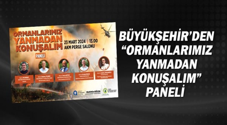 Antalya Büyükşehir Belediyesi, Orman Haftası nedeniyle Türkiye Ormancılar Derneği işbirliğiyle “Ormanlarımız Yanmadan Konuşalım” paneli gerçekleştirecek. 23 Mart Cumartesi günü saat 13.00’de AKM Perge Salonu’nda düzenlenecek panelin açılış konuşmalarını Antalya Büyükşehir Belediye Başkanı Muhittin Böcek, Türkiye Ormancılar Derneği Genel Başkanı Ahmet Hüsrev Özkara yapacak.