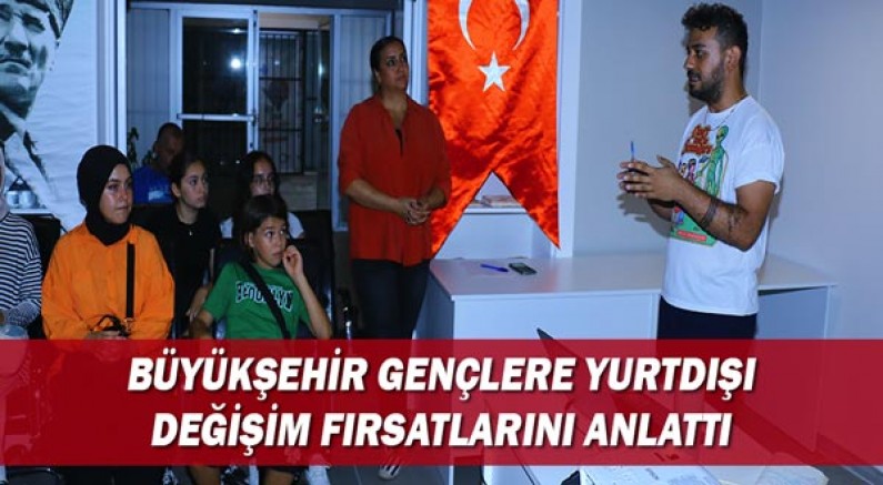 Toplantıda Büyükşehir Belediyesi Gençlik Hizmetleri Şube Müdürü Hayat Ekici Gürkan, gençleri yurt dışı değişim programlarına nasıl katılabileceklerine yönelik bilgilendirdi. Büyükşehir Belediyesi Dış İlişkiler Dairesi Başkanlığı tarafından hayata geçirilen projeler ve değişim programları gençlere anlatılırken, farkındalıklarının artması, iş hayatlarına yön verecek projeler ile Avrupa Birliği fonlarını nasıl kullanabilecekleri gençlere tek tek anlatıldı.