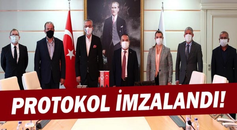 Konuşmaların ardından Başkan Muhittin Böcek ve Antalyaspor Başkanı Mustafa Yılmaz işbirliği protokolünü imzaladı.