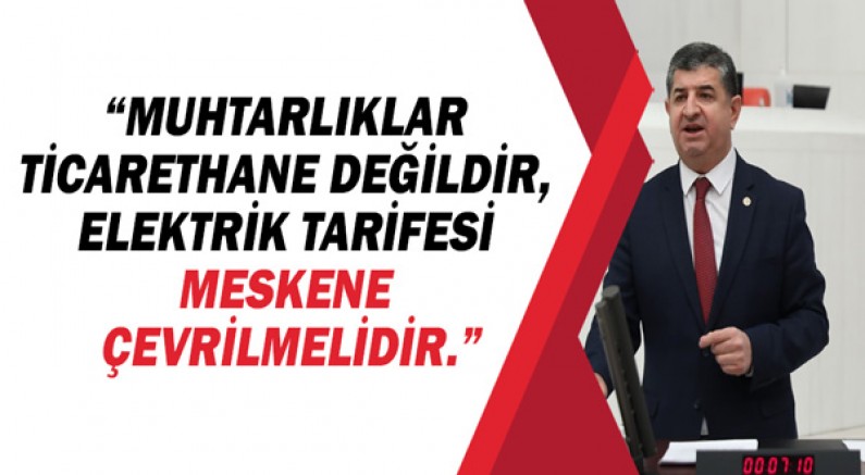 Demokrasinin temel yapı taşı, ilk basamağı olan muhtarlarımızın, vatandaşlarımızın kolay ve hızlı bir şekilde ulaşıp sorunlarını dile getirdiği en yakın yönetim kademesi olması itibariyle kamu hizmetlerinin yürütülmesindeki rolü büyüktür diyen CHP Antalya Milletvekili Cavit Arı, “Muhtarlıklarımızda herhangi bir ticari faaliyet gerçekleşmediği gibi ticarethanelerdeki gibi kazanç sağlanan, kar elde edilen herhangi bir iş yapılmamaktadır. Dolayısıyla muhtarlarımız kısıtlı gelirleri ile hem muhtarlık hizmet binası giderlerini hem de mahalle sakinlerinin taleplerini karşılamaya çalışmaktadır. Kamu yararına faaliyet gösteren muhtarlarımızın görevlerini ifası için kullandıkları muhtarlık hizmet binaları birer ticarethane olmayıp kullanılan elektrik enerjisinin de ticarethaneler için belirlenen elektrik tarifesinden değil meskenler için kullanılan elektrik tarifesi üzerinden faturalandırılması gerekmektedir.” dedi.