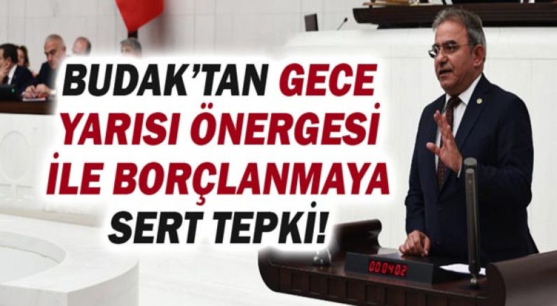 Budak, iktidarın seçime yakın Anayasa Mahkemesi ve Danıştay tarafından daha önce iptal edilen zeytinliklerde madencilik, limanlara özelleştirmede süre uzatımı ve kamu çalışanları sendikalarında baraj uygulaması gibi düzenlemeleri bir torba kanuna koyarak, bütçe görüşmeleri esnasında Sanayi Komisyonu’na getirmesinin kabul edilemez olduğunu söyledi. Budak, “ Daha önce Anayasa Mahkemesi ve Danıştay tarafından iptal edilen düzenlemelerde ısrar, hukuk devleti ile bağdaşmıyor. Neredeyse tüm maddelerinde Anayasaya aykırılık sorunu olan bir torba kanuna, gece yarısı verilen bir korsan önerge ile tek bir milletvekilinin imzasıyla 2022 bütçesinde 279,5 milyar lira olan borçlanma limitini, 200 milyar lira artırıyorlar. Açıklamalardan anlıyoruz ki borçlanma yapılmış, yasa sonradan Meclise geliyor. Minare çoktan çalınmış, kılıfını TBMM’ye diktiriyorlar. Halkın cebinden bir gece yarısı önergesi ile 200 milyar lira daha alınmış oldu” diye konuştu.