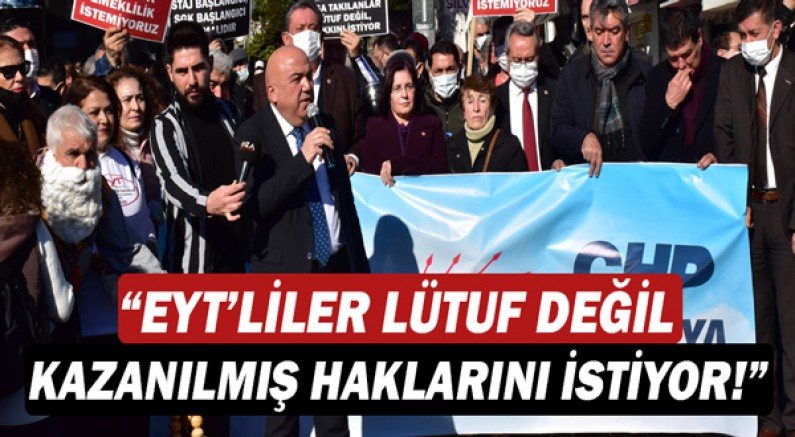 “Kısacası EYT’liler yıllardır yaşadıkları hak kayıplarını ve mağduriyetleri giderecek yasanın çıkmasını istiyor! Talepleri iktidar tarafından yok sayılan ve toplumda hedef gösterilen EYT’liler bu büyük hak gaspına CHP iktidarında son verileceğini biliyor. Cumhuriyet Halk Partisi olarak Türkiye’nin dört bir yanından, emeklilerimiz ve emeklilikte yaşa takılan vatandaşlarımız için yapacağımız düzenlemeleri burada bir kez daha dile getiriyoruz: