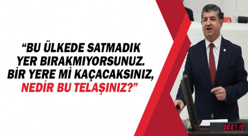Cumhuriyetin ilanından bugüne kadar o zor şartlarda yapılmış birçok fabrika iktidarınız tarafından birer birer satıldı. Şimdi, Milli Emlak ile TOKİ kamu arazilerini parsel parsel satmaya devam ediyor. Yıl sonuna kadar 1.500 arazi satılacak. 2022 yılında yine bu kurumlar tarafından 5.542 taşınmazın satış ilanı hazırlıkları resmî kayıtlarda var. Siz ne yapıyorsunuz? Bu ülkede satmadık yer bırakmıyorsunuz. Hepsini parsel parsel satıyorsunuz, bir yere mi kaçacaksınız, nedir bu telaşınız?” diyerek tamamladı.