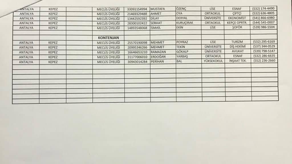 Cumhuriyet Halk Partisi'nin paylaştığı listede İYİ Parti ve CHP'nin kurmuş olduğu Millet İttifakı'ndan oluşan isimler yer alıyor. Teşkilat tarafından paylaşılan ve henüz kesin olmadığı belirtilen listenin başında belediye başkan adayı olarak Murat Dinç, meclis üyesi adayı olarak da Mesut Kocagöz, Enver Barış, Barış Bulut ve Oktay Başaran yer alıyor. İşte paylaşılan listenin tamamı: