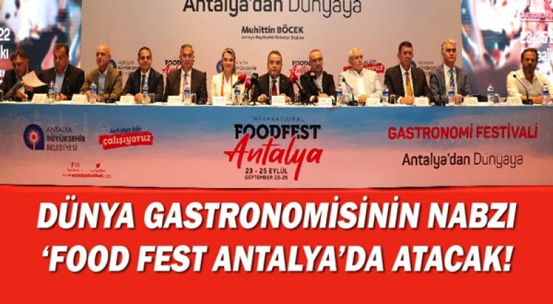 Tarihi, eşsiz konumu, biyoçeşitliliği, benzersiz kıyıları, doğal güzellikleri ve yemek kültürü ile dünya turizminin göz bebeği Antalya, I. Uluslararası Food Fest gastronomi festivaline ev sahipliğine yapacak. Yerel gıdaya sahip çıkmak amacıyla, “Sürdürülebilirlik, Biyoçeşitlilik ve Yerel Ürünlerin Desteklenmesi” temasıyla 23-25 Eylül tarihleri arasında düzenlenecek I. Uluslararası Food Fest Antalya, gastronomi dünyasının duayenlerini bir araya getirecek. “Antalya’dan Dünyaya” mottosuyla gerçekleşecek uluslararası festival, Antalya Karaalioğlu Parkı’nda dünyanın dört bir yanından gelen konukları ağırlayacak. Kentin saklı kalmış lezzetlerini dünya arenasına taşıyacak, dünyaca ünlü Michelin yıldızlı şeflerin katılacağı Food Fest Antalya’nın tanıtımı için, Antalya Büyükşehir Belediye Başkanı Muhittin Böcek’in ev sahipliğinde Antalya’da bir basın toplantısı gerçekleştirildi.