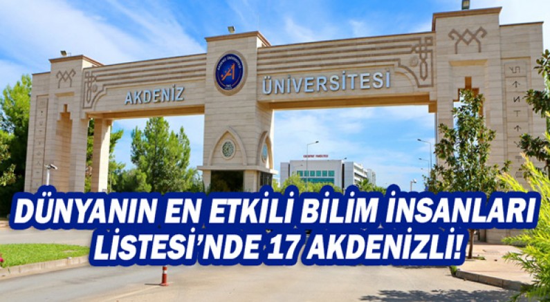 Dünyanın En Etkili Bilim İnsanları Listesi’nde yer alan Akdeniz Üniversitesi Öğretim Üyeleri şöyle; Prof. Dr. Osman Duman, Doç. Dr. Bekir Akgöz, Doç.Dr. Evgin Göçeri, Prof. Dr. Tomris Özben, Prof. Dr. Erol Ayrancı, Prof. Dr. Tahir Albayrak, Prof. Dr. Can Tansel Tuğcu, Doç. Dr. Şuayip Yüzbaşı, Prof. Dr. Yılmaz Şimşek, Prof. Dr. Sibel Tunç, Prof. Dr. Erkan Alpsoy, Prof. Dr. Afşin Güngör, Prof. Dr. Ayhan Topuz, Prof. Dr. Nalan Gökoğlu, Dr. Öğr.Üyesi Çigdem Demir, Doç. Dr.İrfan Turhan, Prof. Dr. Mustafa Demirci.