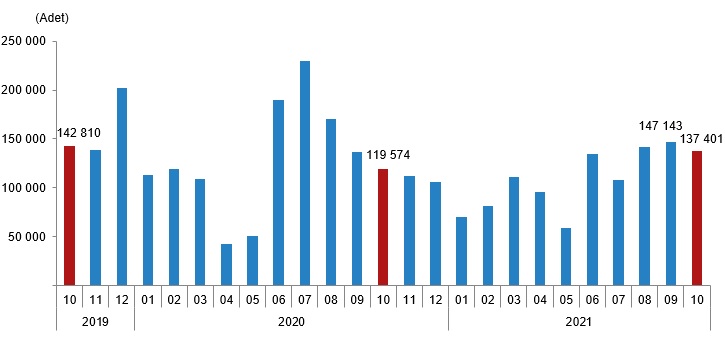 Türkiye genelinde diğer konut satışları Ekim ayında bir önceki yılın aynı ayına göre %16,3 artarak 109 bin 352 oldu. Toplam konut satışları içinde diğer satışların payı %79,6 olarak gerçekleşti. Ocak-Ekim döneminde gerçekleşen diğer konut satışları ise bir önceki yılın aynı dönemine göre %17,4 artışla 876 bin 635 oldu.
