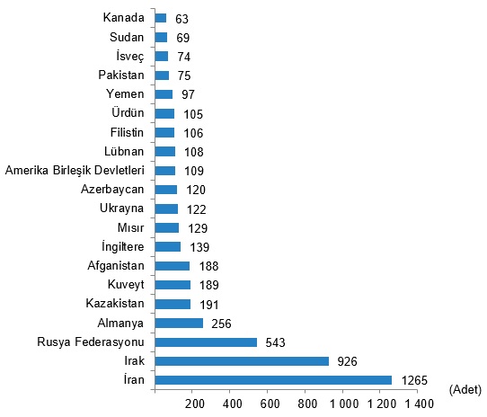 Ekim ayında İran vatandaşları Türkiye'den bin 265 konut satın aldı. İran vatandaşlarını sırasıyla 926 konut ile Irak, 543 konut ile Rusya Federasyonu vatandaşları izledi.