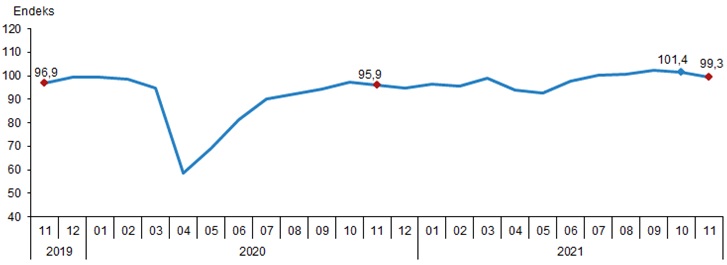 Ekonomik güven endeksi, sektörel endeksler ve değişim oranları, Kasım 2021