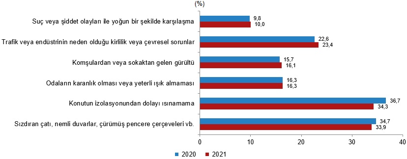 Konut ve çevre problemleri (%), 2020, 2021