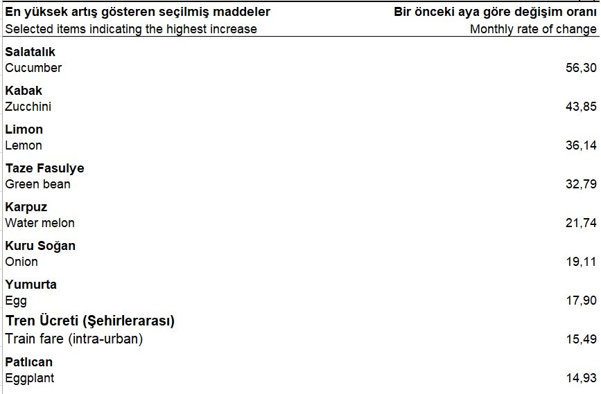 Temmuzda yüzde 18,95 olan yıllık resmi tüketici enflasyonu, ağustosta yüzde 19,25'e yükseldi. Ağustosta zam şampiyonu, bir önceki aya göre ortalama yüzde 56,30'luk sert artışla salatalık oldu. Böylece enflasyon, son 28 ayın zirvesine ulaşmış oldu.