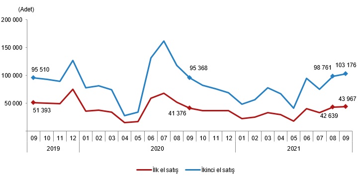 Türkiye genelinde ikinci el konut satışları Eylül ayında bir önceki yılın aynı ayına göre %8,2 artış göstererek 103 bin 176 oldu. Toplam konut satışları içinde ikinci el konut satışının payı %70,1 oldu. İkinci el konut satışları Ocak-Eylül döneminde ise bir önceki yılın aynı dönemine göre %17,5 azalışla 661 bin 982 olarak gerçekleşti.