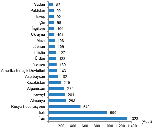 Eylül ayında İran vatandaşları Türkiye'den bin 323 konut satın aldı. İran vatandaşlarını sırasıyla 990 konut ile Irak, 540 konut ile Rusya Federasyonu vatandaşları izledi.