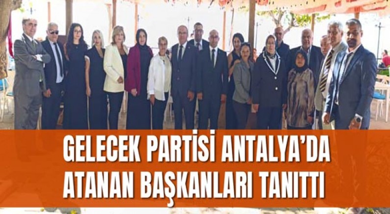 Gelecek Partisi Antalya, yeni atamaları kamuoyuna duyurdu. Buluşmada Muratpaşa İlçe Başkanlığına atanan Emrah Kersen, Kepez İlçe Başkanlığına atanan Hatice Kübra Turunçoğlu, İl Kadın Kolları Başkanlığına atanan Kadın Selma Çay, İl Başkanı Muhammet Acar tarafından tanıtıldı. Toplantıya ayrıca Alanya İlçe Başkanı Yıldız Serdaroğlu da katıldı.