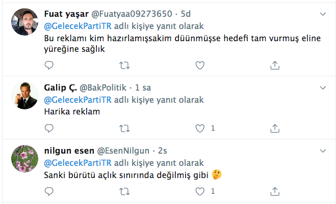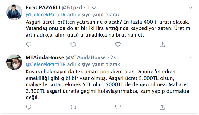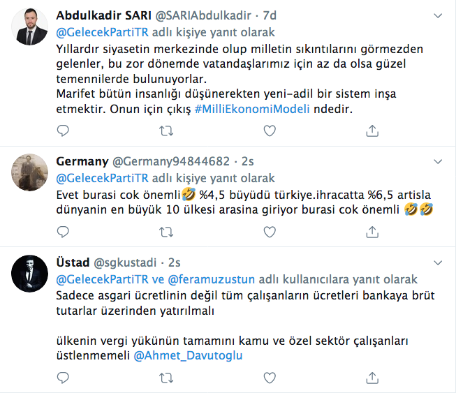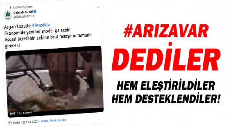 Gelecek Partisi twitter hesabından yapılan videolu paylaşımda "Asgari Ücrette #ArızaVar Ekonomide yeni bir model gelecek! Asgari ücretlinin cebine brüt maaşının tamamı girecek!" ifadelerinin yer verilmesi, twitter kullanıcılarını ikiye böldü.