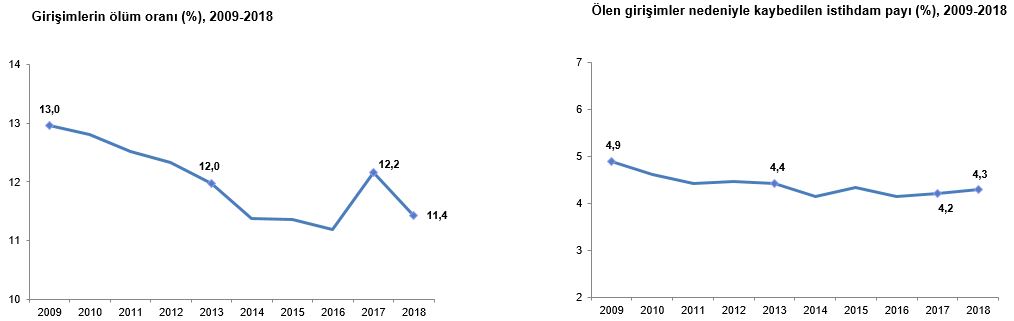Girişimlerin 2018 yılında bir yıllık hayatta kalma oranı %81,3, iki yıllık hayatta kalma oranı %64,0 olarak gerçekleşti.
