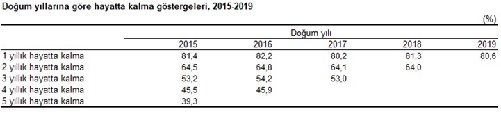 Girişimlerden 2019 yılında doğanların %80,6'sı 2020 yılında hayatta kaldı