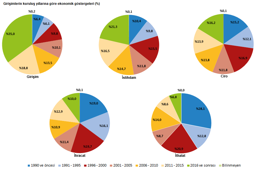 En yüksek ciro payına ise %16,9 ile 1996-2000 yılları arasında kurulan girişimler sahip oldu.