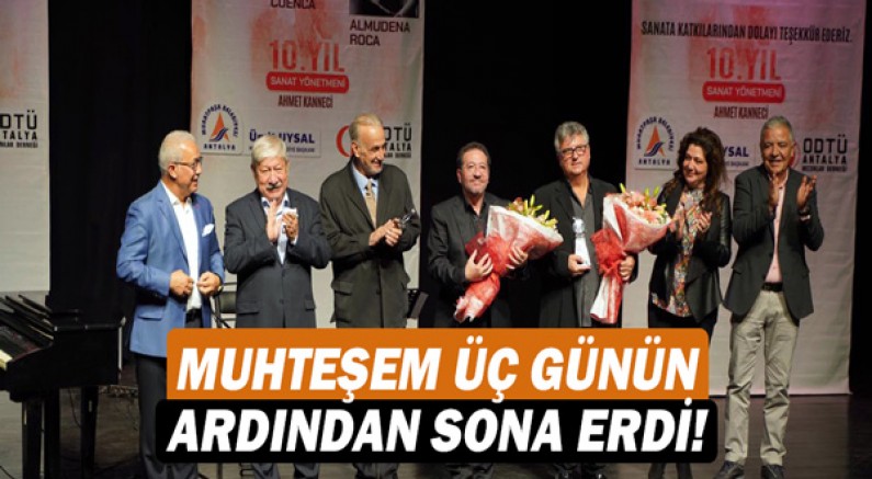 Bu yıl 10’uncu yaşını kutlayan ve sanat yönetmenliğini Ahmet Kanneci’nin yaptığı Uluslararası Antalya Gitar Festivali sona erdi. Muratpaşa Belediyesi ve ODTÜ Antalya Mezunlar Derneği’nin düzenlendiği festivalle Antalyalı müzik severler muhteşem üç gün yaşadı. Türkan Şoray Kültür Merkezi’nde perşembeden cumartesiye her gün saat 20.00’de başlayan konserlere ilgi yoğundu.