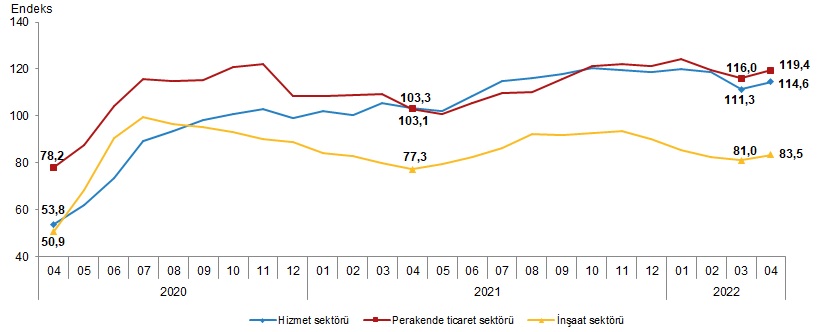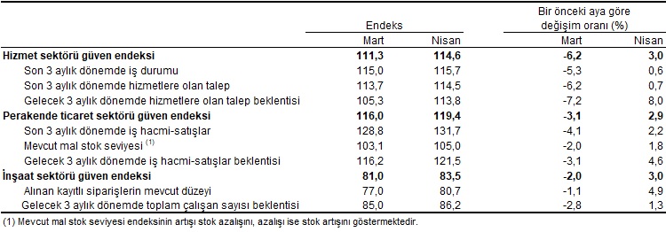 Mevsim etkilerinden arındırılmış güven endeksleri, Nisan 2022 Mevsim etkilerinden arındırılmış güven endeksleri ve değişim oranları, Nisan 2022
