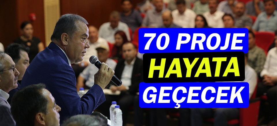 Seçimden önce açıkladığı 70 projeyi 5 yıl içinde hayata geçireceklerini dile getiren Böcek, Halk Et, Halk Su projeleri ile ilgili çalışmalara başladıklarını, Halk Su projesinin Ant-Su olarak hizmete sunulacağını kaydetti. Çiftçilere yönelik Halk Yem ve gübre desteği ile ilgili çalışmaları tamamlamak üzere olduklarını açıklayan Başkan Muhittin Böcek, “Bunun yanında tohum desteği, fide desteği çalışmalarımız sürüyor. Tüm ilçelerde soğuk hava deposu kazandıracağız. Güneş tarlaları ile ilgili de çalışıyoruz. Halkımızın yararına, çiftçimizin yararına ne varsa ilçelerimize kazandıracağız” diye konuştu.